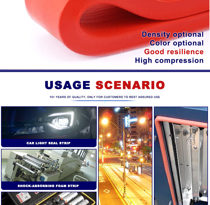 Принять силиконовое сырье высокой чистоты (нетоксичное, экологически чистое) без зависимости от бренда. Благодаря прецизионно-пенообразующим + экструзионным процессам полосы имеют единую структуру замкнутых камер, что обеспечивает их герметичность и отсутствие утечки воздуха.