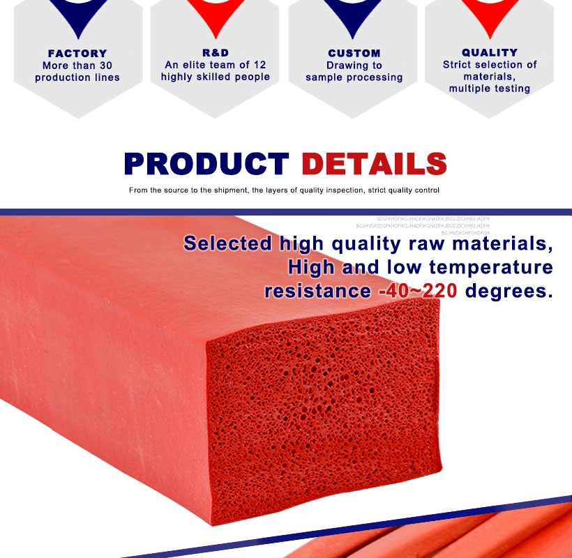 Принять силиконовое сырье высокой чистоты (нетоксичное, экологически чистое) без зависимости от бренда. Передовые процессы пенообразования закрытых камер + экструзии квадрата обеспечивают устойчивость формы полосы даже при экстремальном нагреве.